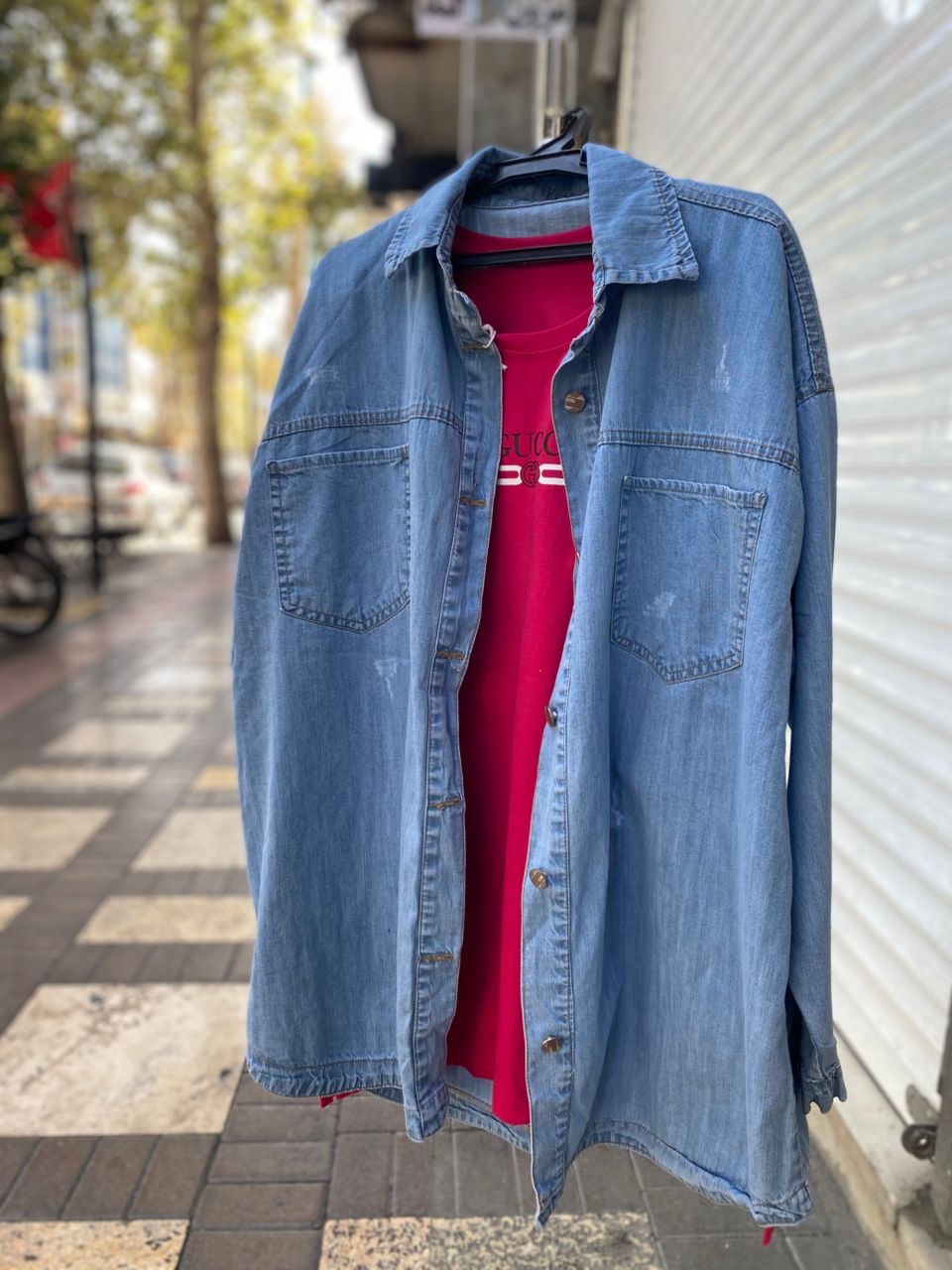 کت کتان و جین کاغذی ترک سایز بزرگ زنانه